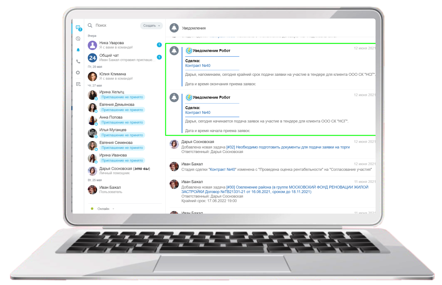 Роботы автоматически напомнят Вам о дате аукциона, о сроке подписания договора и других дедлайнах.