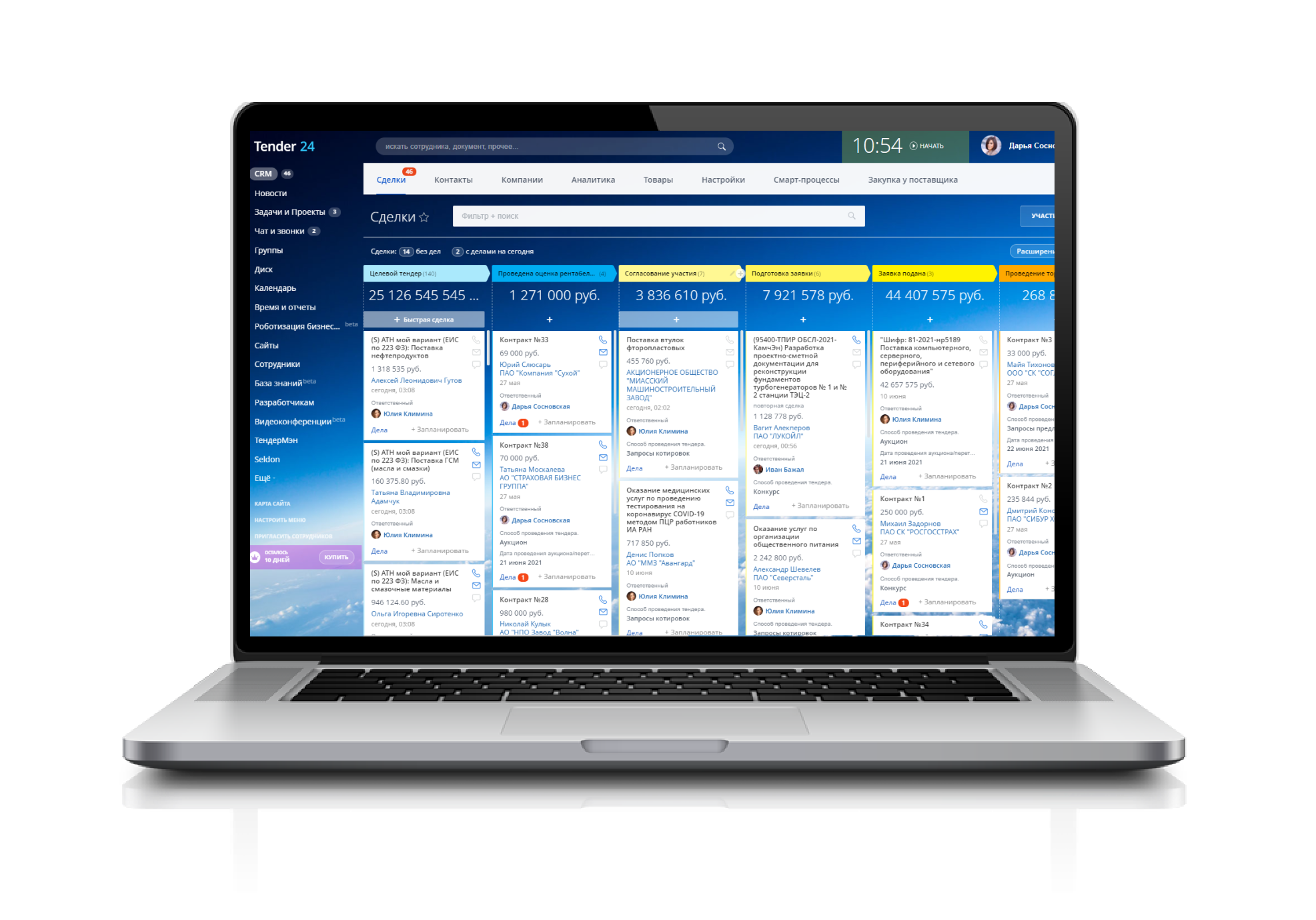 В CRM для госзакупок уже настроены три направления сделок (работа с заказчиком до торгов, участие в торгах, исполнение контракта). Они позволят вам не упустить ни один интересный тендер, отслеживать сроки на каждом этапе закупки, и всегда видеть, сколько тендеров на какой стадии у вас находится.